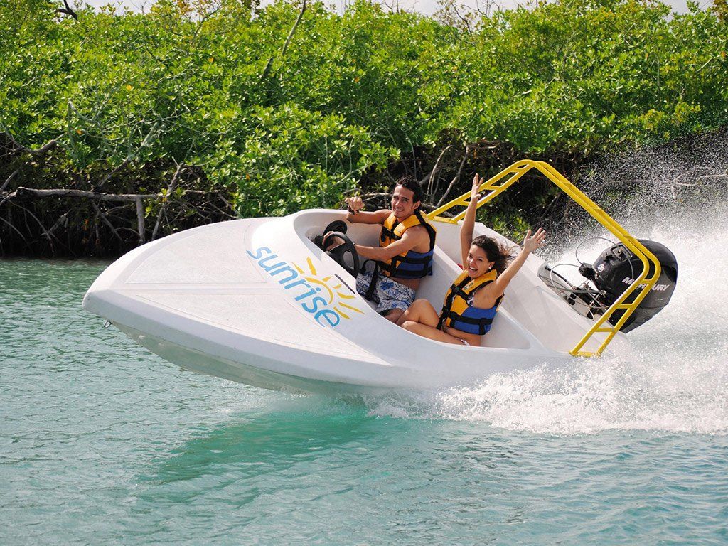 Jungle Tour Cancun é o melhor barco Speed Boat e Snorkeling Adventure com a rota mais emocionante! Conduza o seu próprio barco de velocidade através dos belos canais de manguezais da Lagoa Nichupté! Depois de cerca de 35 minutos, você chegará ao segundo maior recife de coral do mundo no Parque Nacional Punta Nizuc, para mergulhar em uma grande variedade de vida marinha.